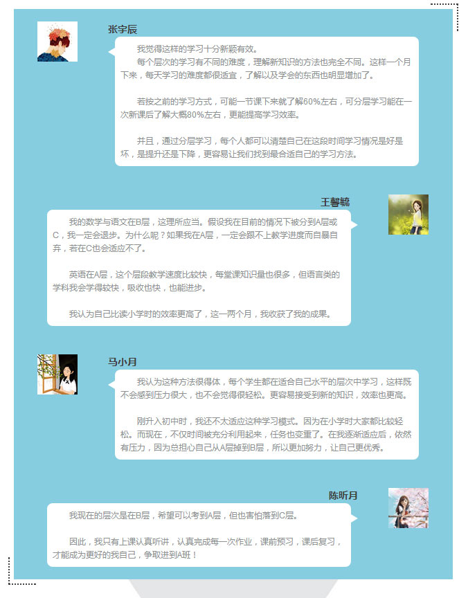分層教學法的實施,避免了部分學生在課堂上完成作業后無所事事。同時,也讓學生們都體驗到學有所成,增強了學習信心。