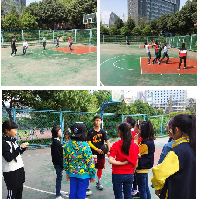 每個班都利用業(yè)余時間積極訓練,互幫互助。男生主動擔任教練,講規(guī)則,講方法,盡量讓女生較快的提高技術,盡快達到配合默契。