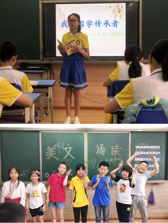 在近兩個月的時間里,各年級分別開展了“故事會”、“故事新編”、“美文誦讀”、“小古文誦讀比賽”、“課本劇表演”、“背誦小達人”等比賽活動。