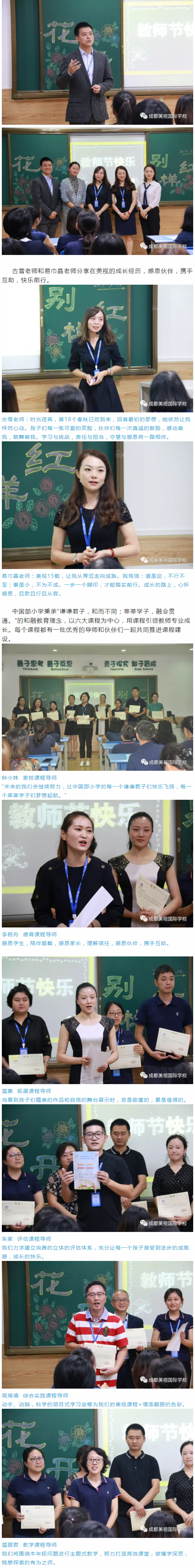 我們在校長們最真誠的祝福中結束了今天意義不凡的教師節專題活動。紀校長作為整場活動的主持人,對老師們給予無限的期望,也給了老師們最誠摯的祝福:踏遍青山人未老,美視風景這邊獨好。