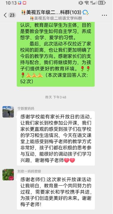在思辨中明理,在篤行中收獲,在實踐中成長,家長開放課活動見證了新課標視域下課堂點亮智慧、家校共識共育的成長樣態。