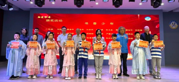 9月28日上午,成都美視學(xué)校中國部·小學(xué)“詩語少年,文傳千古”書香校園頒獎典禮在四年級1班娓娓道來的《走進王維的水墨丹青》朗誦中拉開帷幕。