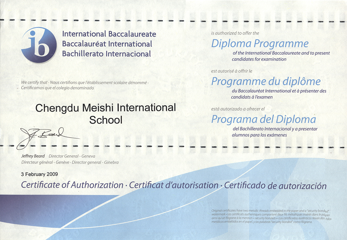 成都美視師一學校經IB授權,引進DP(有文憑)課程;獲DP和MYP、PYP授權,開設DP、MYP、PYP項目,美視師一是中國西南地區首家同時實施IB三大項目的國際學校。
