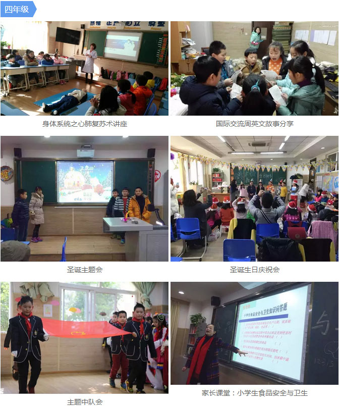 四年級的大朋友和小朋友借著圣誕的熱情和喜氣,進行著一場別開生面的生誕暨集體生日會;圣誕爸爸化身快樂的使者為孩子們送來了最溫暖的禮物;還有的班級在國際交流周里為乖娃娃們送來了一曲曲動人的英文歌;同時,他們還開展了內容新穎、形式多樣,彰顯才華的主題中隊會,各班級的乖娃娃們在老師的帶領下都努力地成為那個樂于表達的國際人。