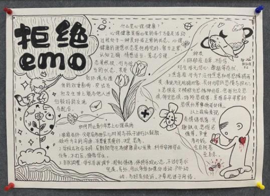 本次心理小報展共設“擁抱自己”、“生命的意義”、“少點emo,向陽而生”三個主題,同學們的作品是思維的反映,是情感的流露,是個性的張揚。細細品味,如唱熱烈絢爛的青春之歌,如閱如夢似幻的童話故事。讓我們一起研味作品,去感受同學們的內心世界吧!