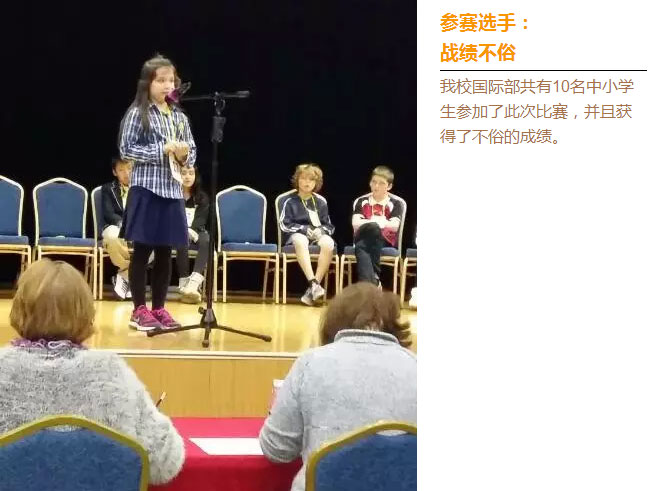 一年一度的國際學(xué)校聯(lián)盟Spelling Bee在成都國際學(xué)校舉行。我市5所學(xué)校的40多名中小學(xué)生參與了此次既緊張又精彩絕倫的比 賽。我校參賽選手表現(xiàn)不俗。