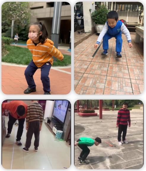 立定跳遠比賽開始,只見同學們如小青蛙一樣靈巧向前蹦。