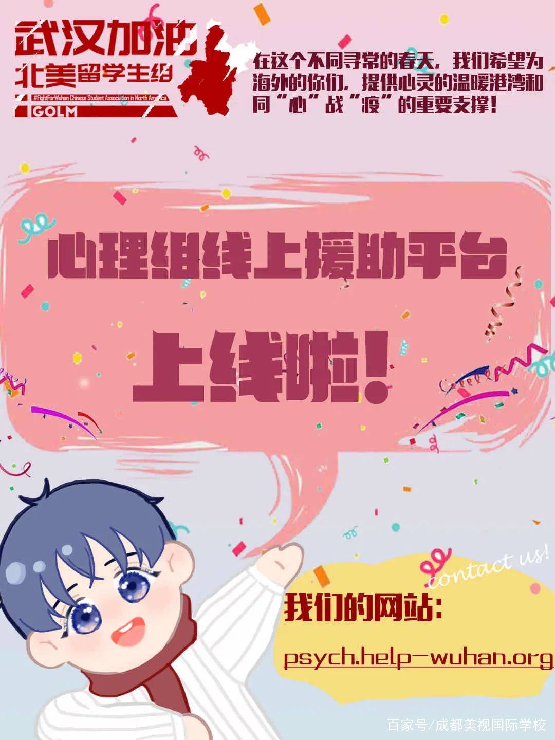 近期武漢加油·北美留學生組做的就是一個心理援助平臺對于目前身在海外的留學生提供一個心理支持。