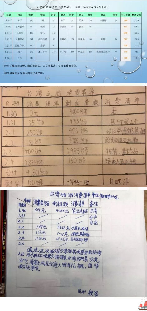 帶隊的三位老師讓孩子每天在各自群里匯報自己每天的消費金額。