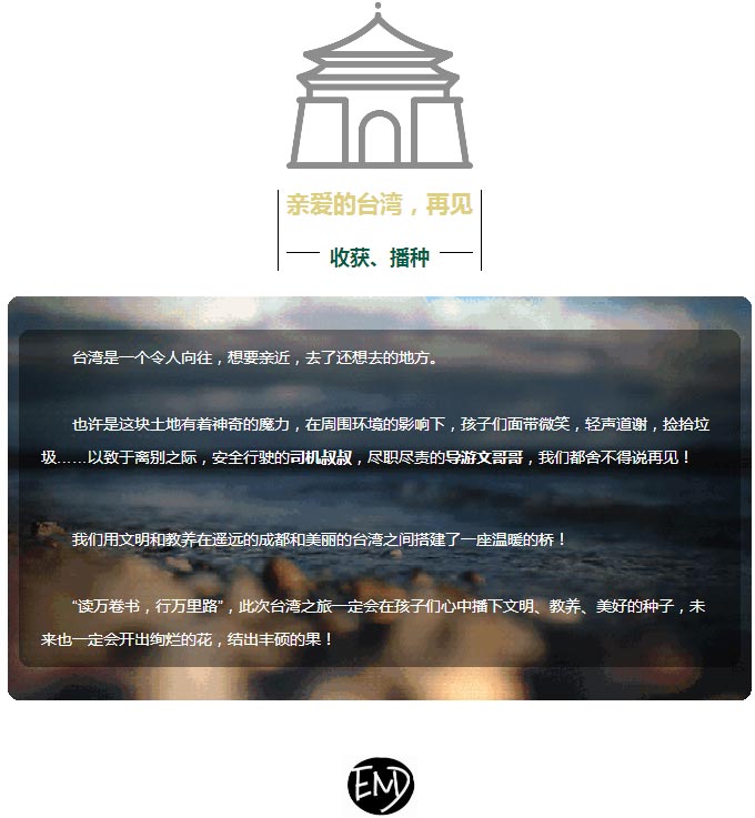 在初到臺北的第一天晚上,我們的老師就跟孩子作了約定——“我是國際小公民!我們是來自成都的最美的風景線!”